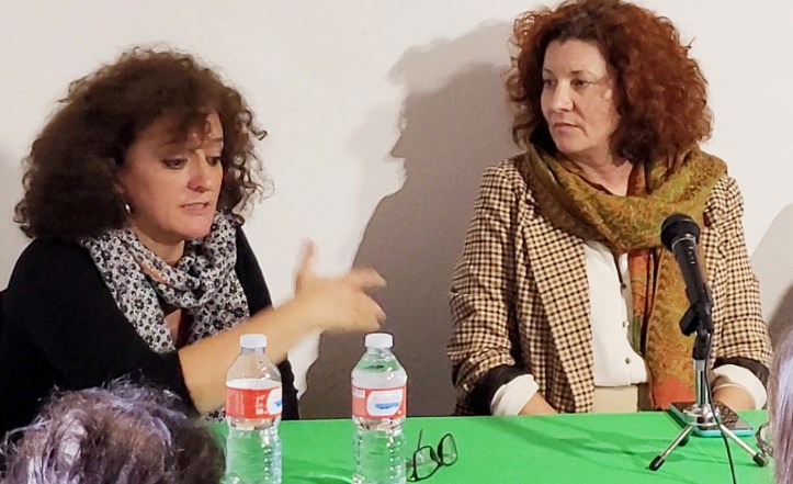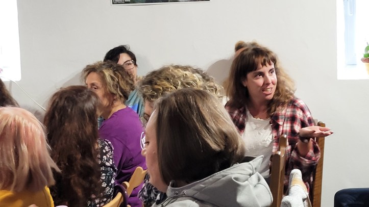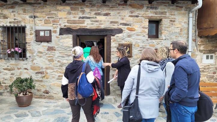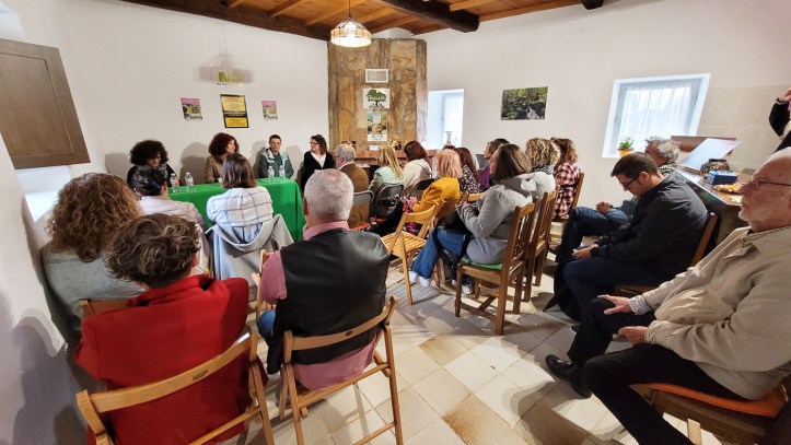 Luego nos habló Claudia Rosane Gonçalves, una brasileña afincada en Espinoso, tras una etapa pasada en Barcelona, nos contó lo bien que la han acogido en el pueblo. Salió de su país en busca de un futuro diferente. De pequeña vivió en el campo rodeada de cafetales y ganado, ya estaba familiarizada con el mundo rural. Aterrizó en El Bierzo para un mes, pero pasó un poco más de tiempo llegó la pandemia y echó raíces. Está trabajando por entrar en un proyecto de hostelería, realizando a la vez cursos especializados de formación, le encanta la comida tradicional de El Bierzo y quiere aprender más sobre los productos de aquí. Se ha ruralizado, ha aprendido a buscar y cortar leña en el monte, a fabricar conservas, mantiene una finca cedida por un vecino. Como ella misma dijo: “todo es una lucha y todo se aprende poco a poco”.