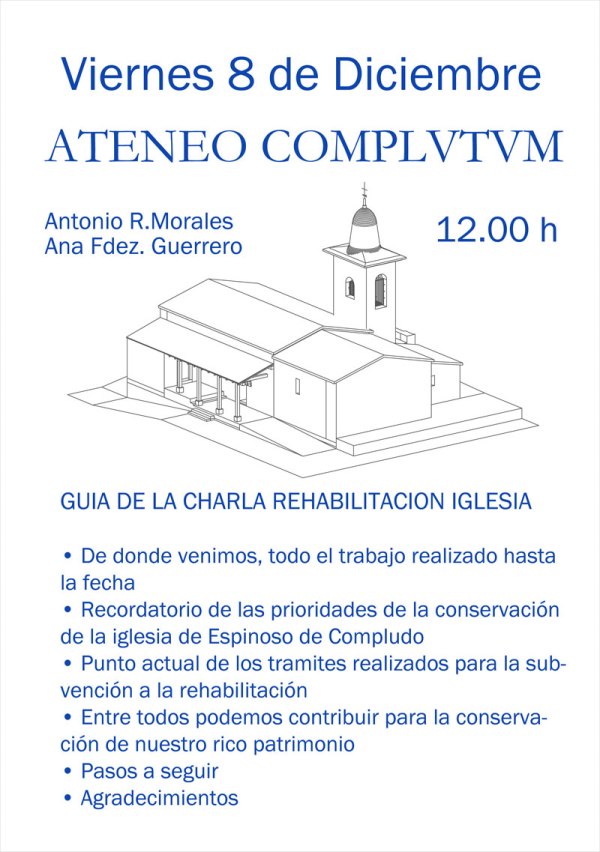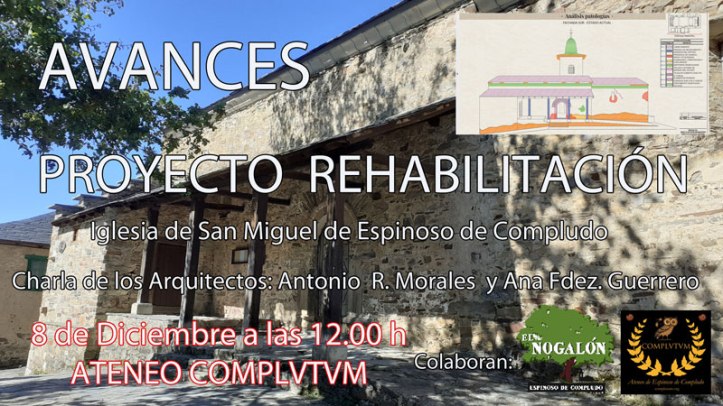 El próximo Viernes 8 de Diciembre de 2023 tendrá lugar en el Ateneo COMPLVTVM una puesta al día de los AVANCES en el PROYECTO de la REHABILITACIÓN de la Iglesia de San Miguel de Espinoso de Compludo, la cual data del Siglo XII.